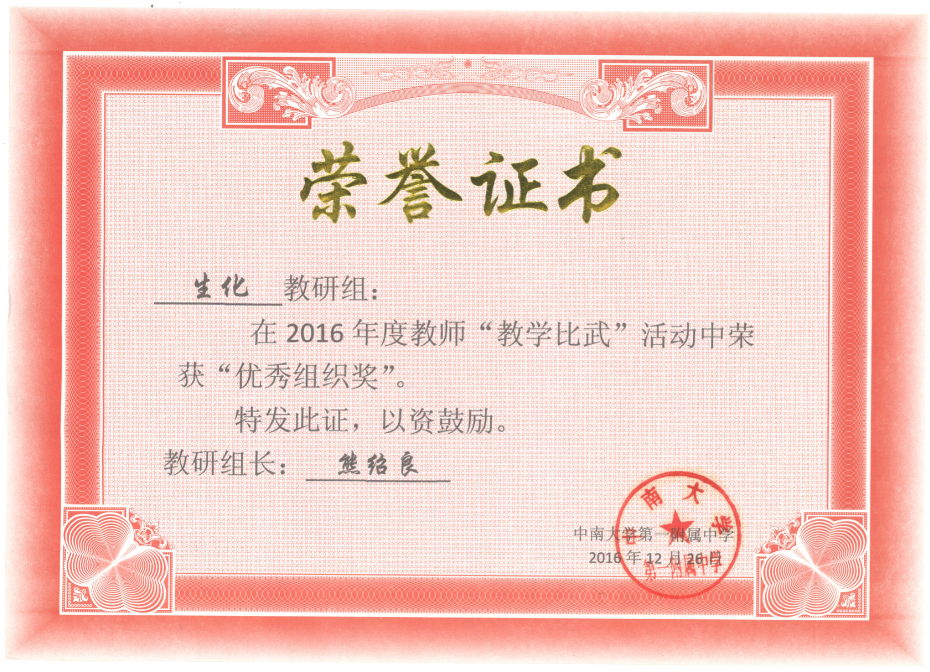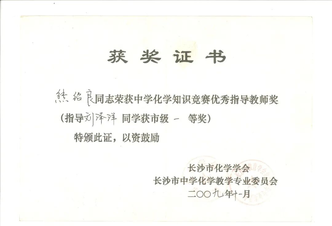 2008年秋,领导让他“临危受命”,担任四个班化学教学,并担任高113班班主任,教学任务之重却也未曾让他有过半分懈怠,日复一日的备课、授课、答疑,还要管理班级的大事小事,事无巨细,可为了学生,他似乎是绷紧了弦,又似是上了发条一般,不知疲倦的在岗位上发挥自己的光与热;终于他的努力得到了回报,2009年他被评为长沙市优秀教师并记三等功,2010年所带班高113班各项表现突出被评为长沙市优秀班集体,本人成为长沙市优秀班主任,2011年高考中113班5人录入重点本科,另有20人录入二本院校,高考理综超省平均分38.6分,对于生源不好的极普通的学校,可以说已取得了很好成绩。在2016届高考中,他任教的130班在他高二接任化学教学后成绩得到了极大的提高,从而在高考化学学科取得了超出校方预料的成绩,这些学生在高中入学时基础较差,但在他的引领下,有八名学生被重点高校录取,本科上线率达98%,其后有两名学生成功保研至985高校,多名学生考研至重点高校继续深造。有学生认为这离不开他在高中时期对学生学习方法的传授、学习理念的灌输,回忆起这个在课堂上潇洒地挥舞着手臂,眉飞色舞地讲课的老师;这个“落红不是无情物,化作春泥更护花”细腻而温情的老师,有学生说他教给大家的不仅是化学知识,更是一颗对学习充满渴盼与敬畏的心,而这恰恰是帮助一个人走的更远所需要的。