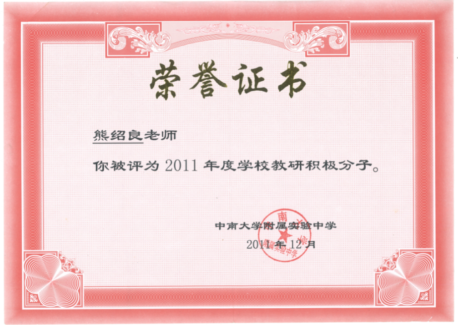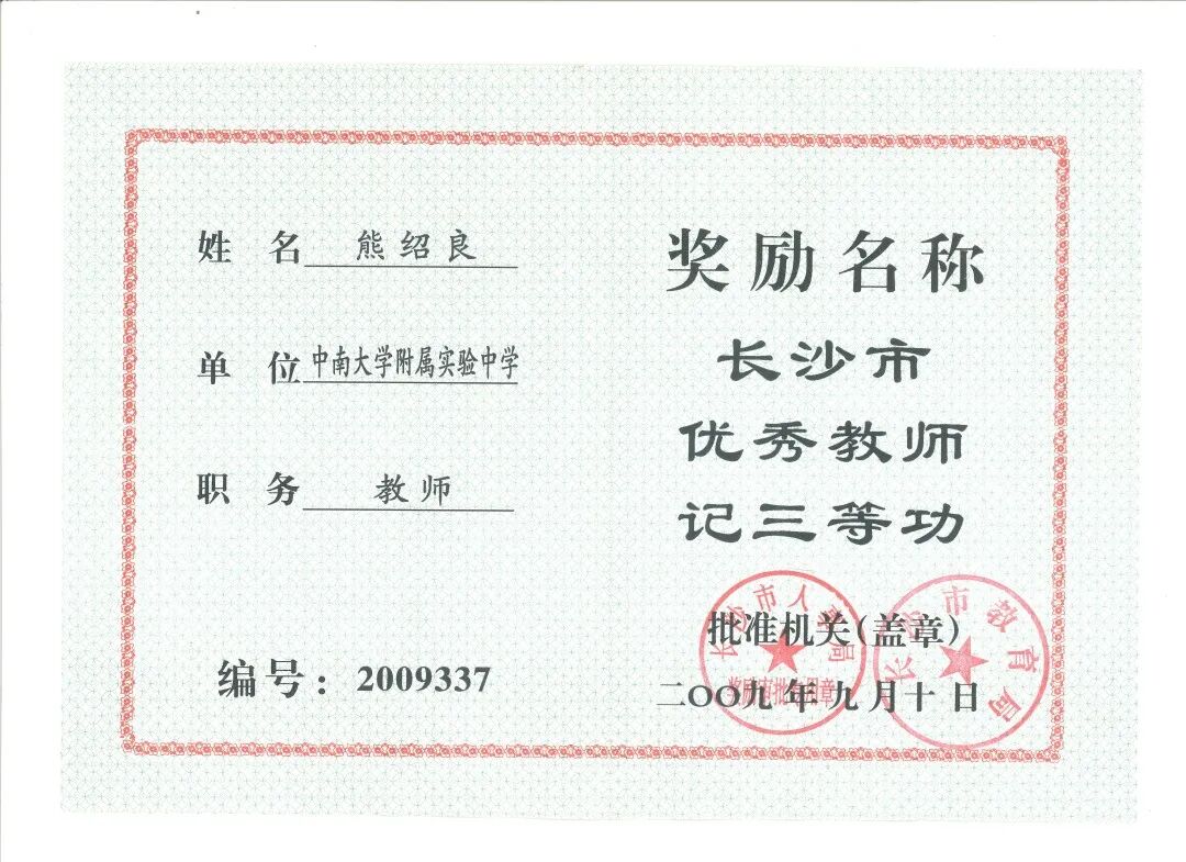 他就是中南大学第一附属中学的熊绍良老师,中共党员,大学本科,理学学士,化学正高级教师。从教三十余年,一直在教育的雄关漫道里不负初心的前行,享受着教育与奉献的快乐。