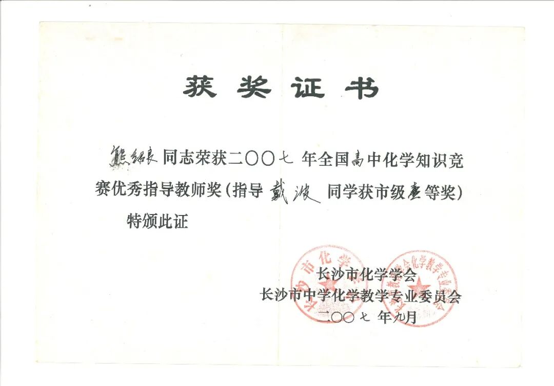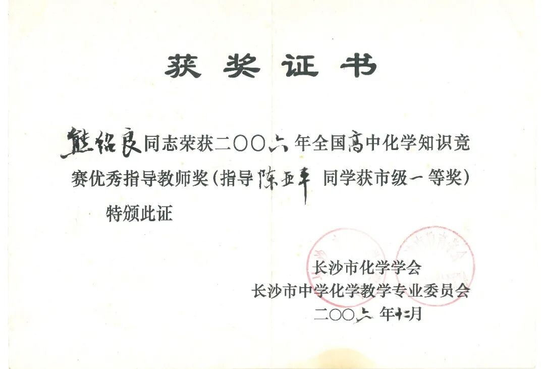 而在中南大学附属中学从教的十余年来,他带过的学生数以千计,桃李不言,下自成蹊,对于蒙其授学的莘莘学子而言,上他的化学课不是完成任务,是真正被引入了化学的大门,他通过各渠道,多方位观察学生知识的盲点和弱点,帮助他们逐渐提高成绩。每一个疑问都能被细心解惑,每一份作业与试题都能得到悉心批改,是他的不厌其烦,也是他的讲课生动有趣,化生硬为诙谐,令诸多基础较为薄弱的学生筑牢了化学的根基,很多人在学考和理科的高考中都得到了一份令自己满意的答卷。而更对学生产生深远影响的是他那一份求真求确、必遂必专的治学态度,是他不断在学海里引领大家乘风破浪而不知疲倦的精神,受他的激励和感染,学生考上大学之后没有倦怠,而是更加奋进,多人成功保研,亦有更多的学子在考研中一鸣惊人考上了自己理想学校,当收到来自全国各地的学生喜讯时最他最快乐的时刻,他甘当这个提灯引路者。