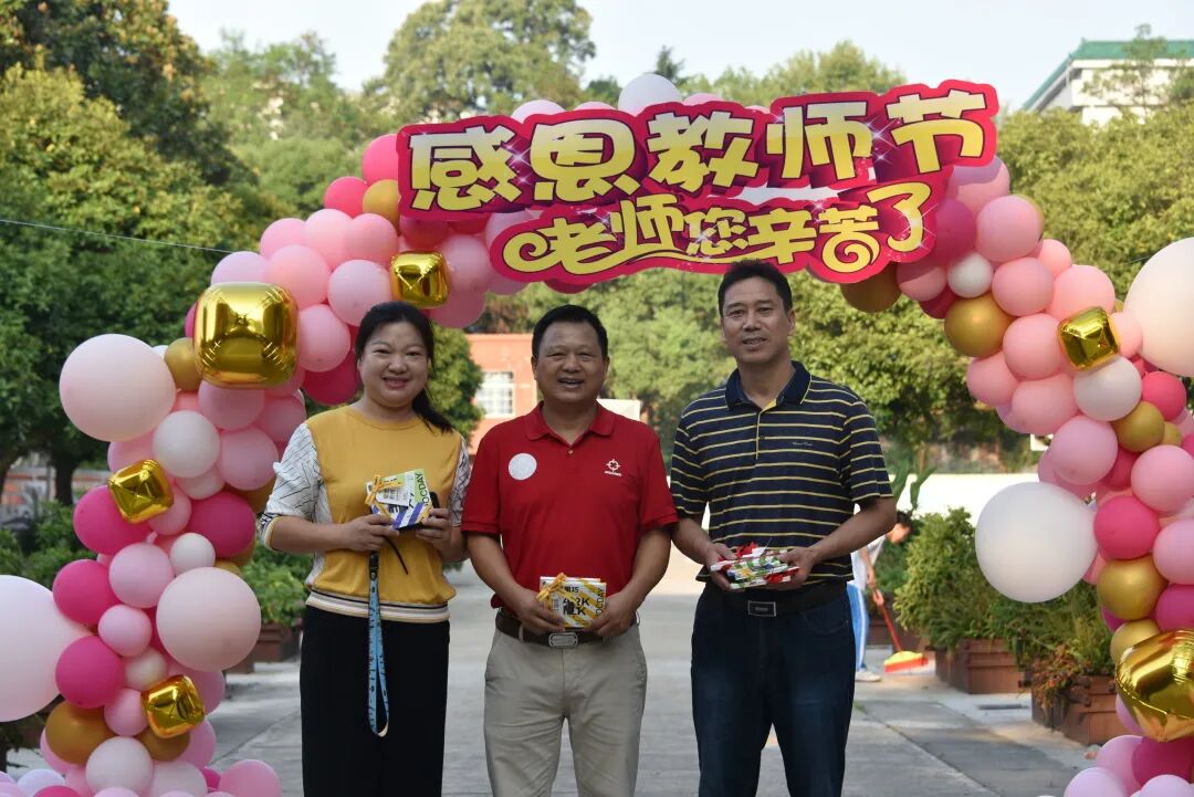 今天是第37个教师节,校园里到处都是轻松、愉快的节日的氛围与祝福。一大早陈道谦校长、刘西亮书记、蒋娟副校长就站在校门口迎接每一位老师送上巧克力和最衷心的祝福。
