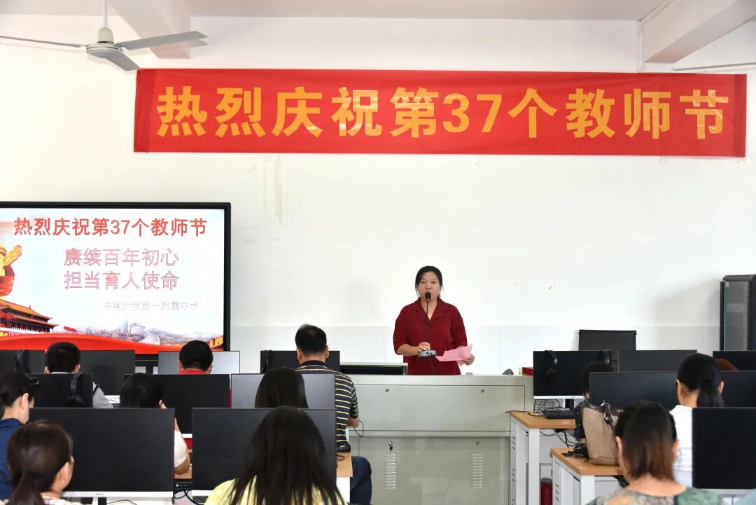 在祝福声中度过忙碌又愉快一天之后,下午五点,全体老师聚集在计算机房举行庆祝第37个教师节的活动。活动由我校教科室主任罗亮飞老师主持,共分为三个主题。