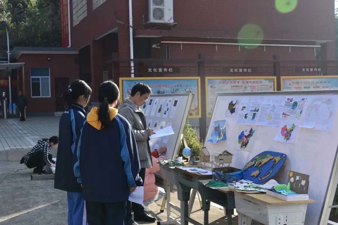 “地理创意设计”,学生作品多样,有地理手抄报、调查研究报告、地球仪模型、各种地图模型、特色民居模型、水循环模型等,充分展示了学生的动手能力和学科思维能力。