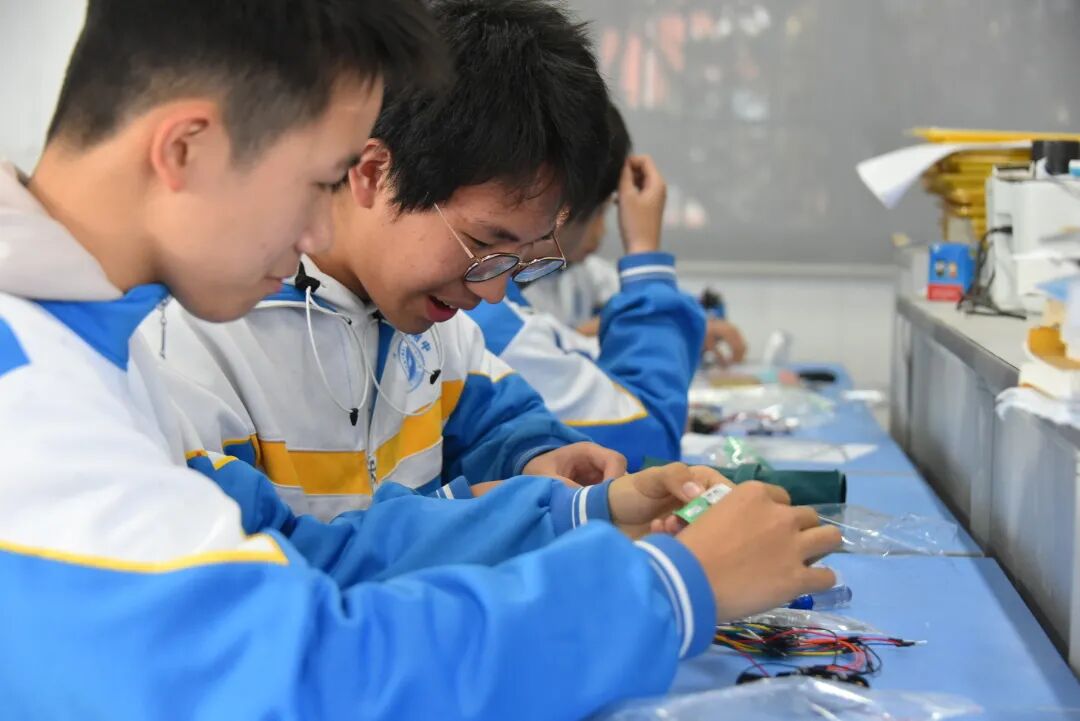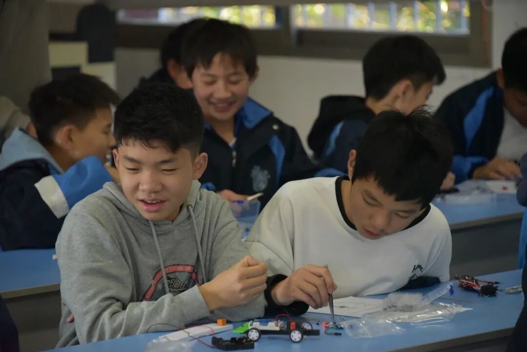 “我是小小发明家"泡沫板电子制作竞赛,“科技创新我能行”科技设计制作及科技小论文比赛现场电子科技制作大比拼比赛紧张而激烈,比赛以两人一组合作进行。尽管电子线路原理复杂,所涉及的电子元器件繁多,但同学们不畏艰难,小心翼翼,通力协作,经过研讨方案、原理分析、制作测试等环节,同学们先后圆满完成相关任务。C2003班的郑荃予同学作品“怎么样快速检查鸡蛋好坏”,密切联系生活,巧妙地运用科学研究的原理方法,解决实际问题;G2001班熊珊羚“关于彩色蚕丝实验研究”,研究方案设计科学,实验过程严谨,实验数据可靠,实验结论可信。这两篇都是不可多得科技小论文。赛后,同学们兴奋地说,科技比赛,不断开拓了视野,提高了大家发现问题解决问题的能力,而且促进了各学科的学习,提升了科技理论和实践方面的综合素质。