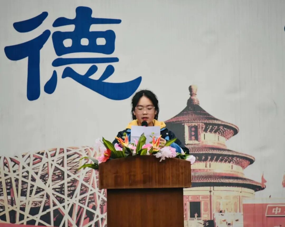 大会第一项议程是升国旗,奏国歌。熟悉的《义勇军进行曲》响起,每个人的目光都注视着五星红旗,庄严而隆重。在刚刚过去的虎年春节里,我们一起见证了女足夺冠和冬奥盛事,此刻国旗冉冉升起,激起了所有老师和同学满腔的文化自信和民族自信。
