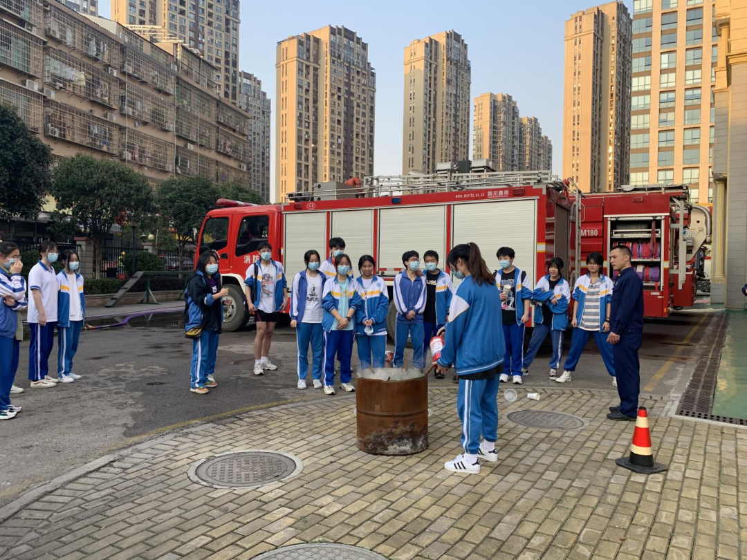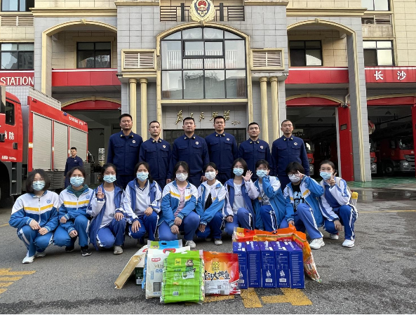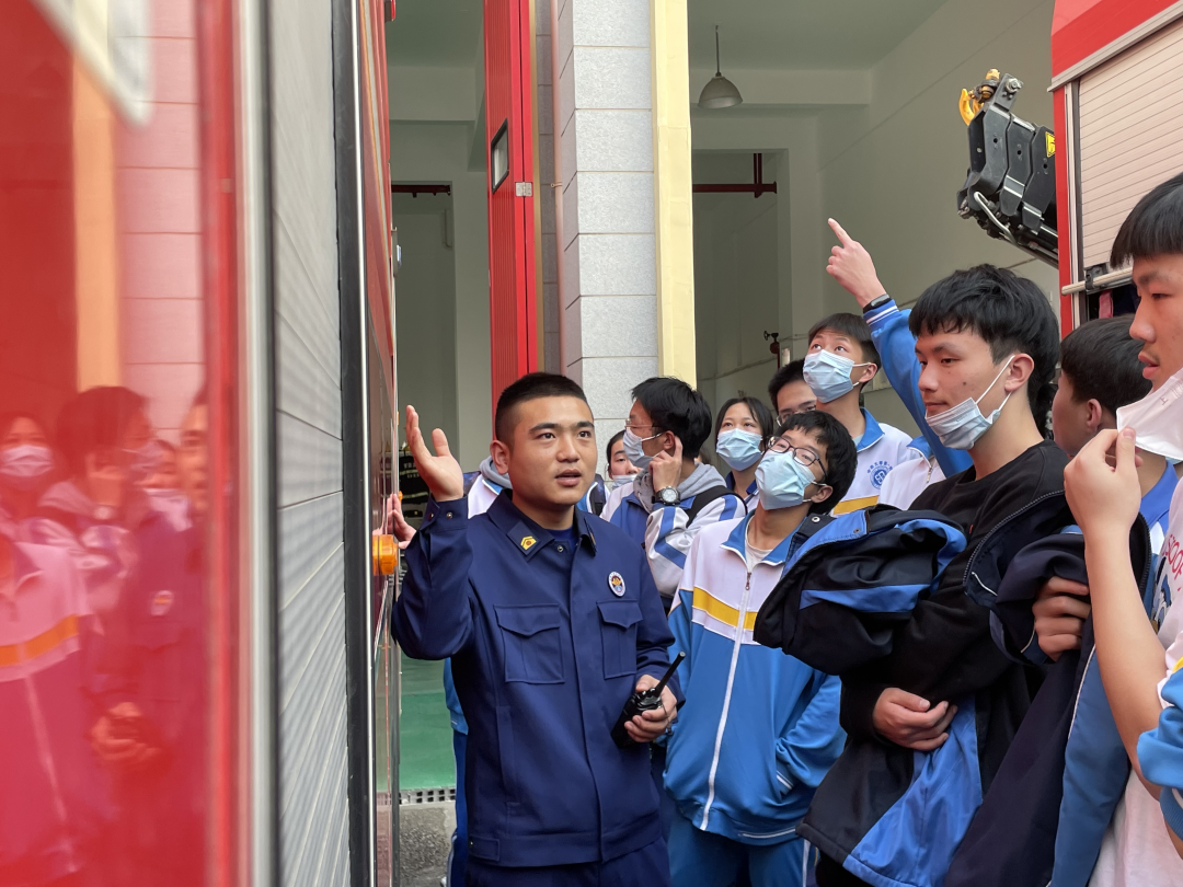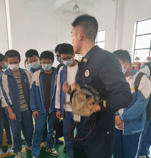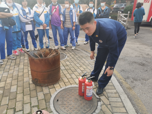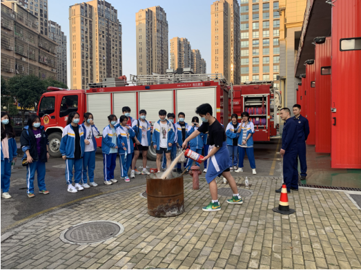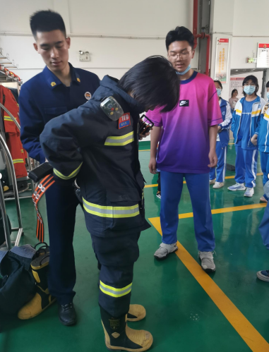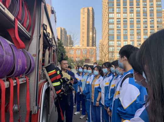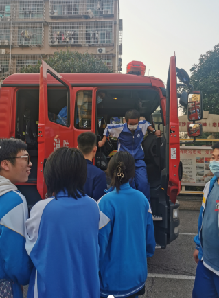 接下来就是由消防员班长带领同学们分班级进行讲解消防安全知识,同学们了解到消防车、消防工具等的不同类型、用途,如何使用灭火器,并穿上消防服体验了一下消防员出警的高效。更理解了消防员身上背负的责任与担当,工作的艰辛与危险,不愧是当代最可爱的活雷锋。之后,学生代表给消防员们送上慰问品表达感谢和崇敬之情。
