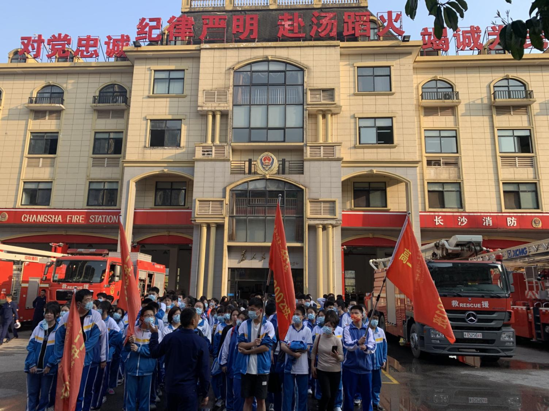 该活动为高二年级的同学们提供了一个走近当代活雷锋——消防员的学习机会。通过了解消防员日常工作,丰富学雷锋活动的内涵,赋予雷锋精神时代意义。 首先,大家有秩序地集合乘坐大巴车前往梅溪湖消防中队,一路上,同学们讨论着关于消防安全的话题,兴奋不已,气氛热烈。
