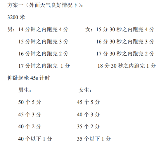 (三)身体素质测试20分(两种方案)