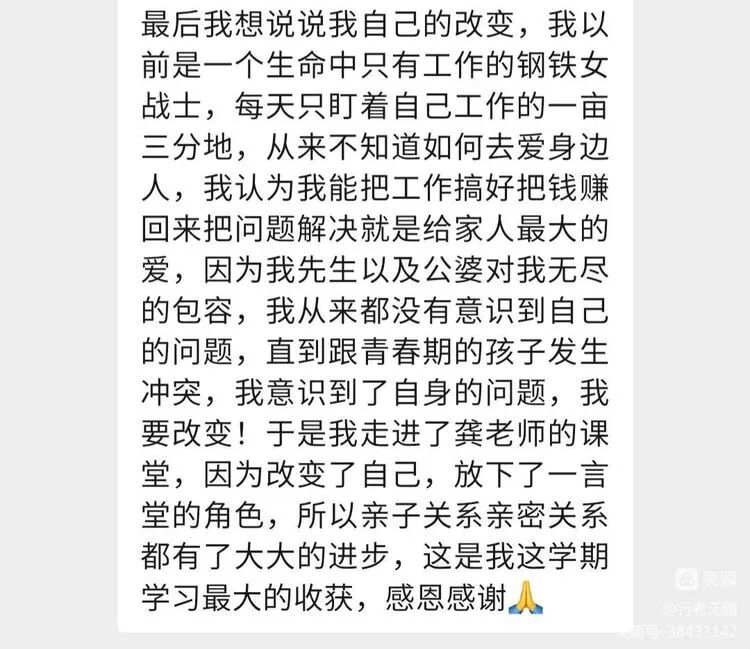 龚京华老师,从事教育工作31年,坚持心理学课程学习和实操多年。在线上带领小组学习十四期,坚持线下学习小组五期。在自我成长的同时也为许多学生和家长带去帮助,希望能让更多的孩子快乐地学习,让更多的家庭越来越幸福!