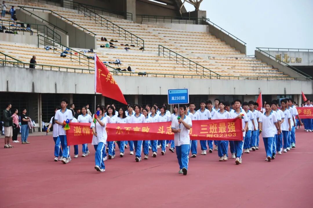 G2103在这个高中阶段的最后一次运动会上,让拼搏的汗水挥洒赛场。高中三年,汗水挥洒,见证的是他们无怨无悔的青春;激情洋溢,表现的是他们永不言弃的精神;团结奋进,书写的是属于高2103班的传奇!