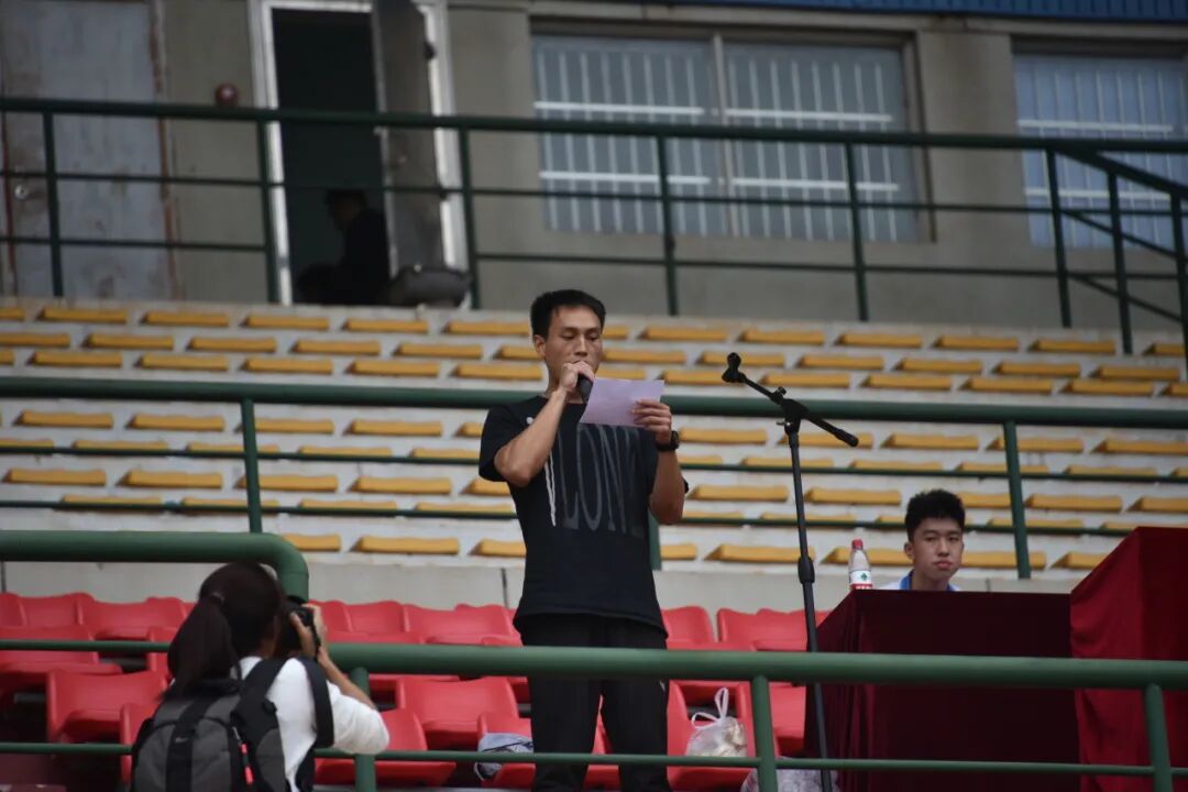 在全校师生奏唱国歌后,刘西亮书记致开幕词。在致辞中,刘西亮书记强调:本次运动会要以亚运健儿为榜样,更好地体现“团结、奋进、文明、育人”的宗旨,办成硕果辉煌的体育盛会。