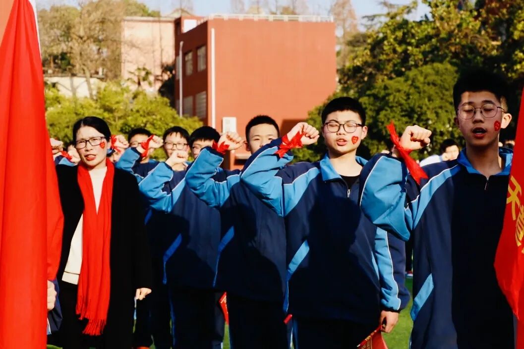 全体毕业年级教师有序上台,为同学们送上带有自己学科特色的祝福,并进行集体宣誓,老师们的誓言掷地有声,为同学们擂响战鼓。
