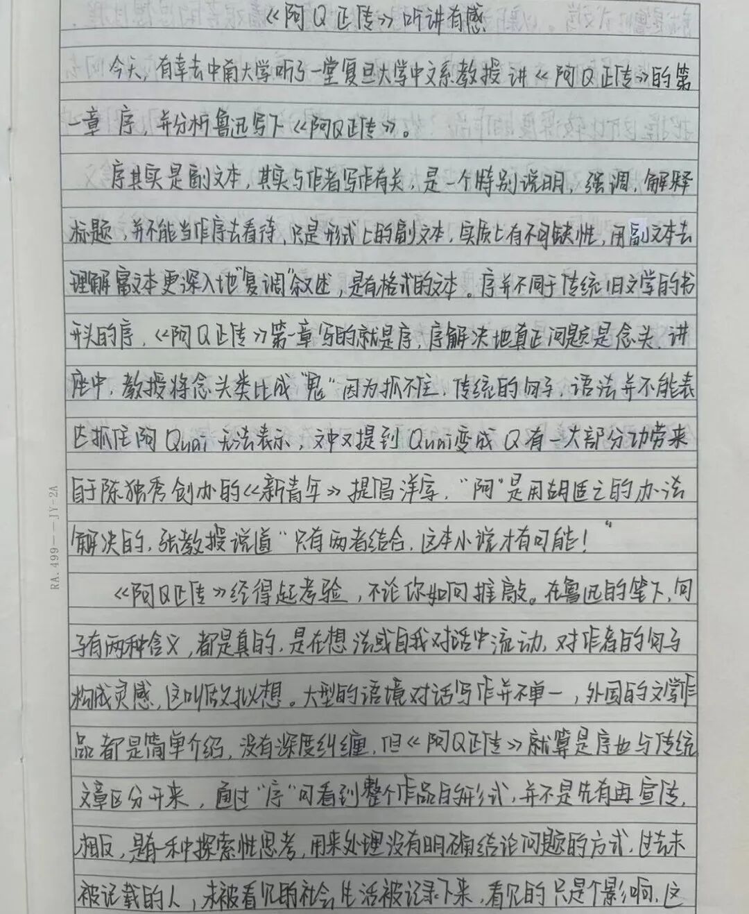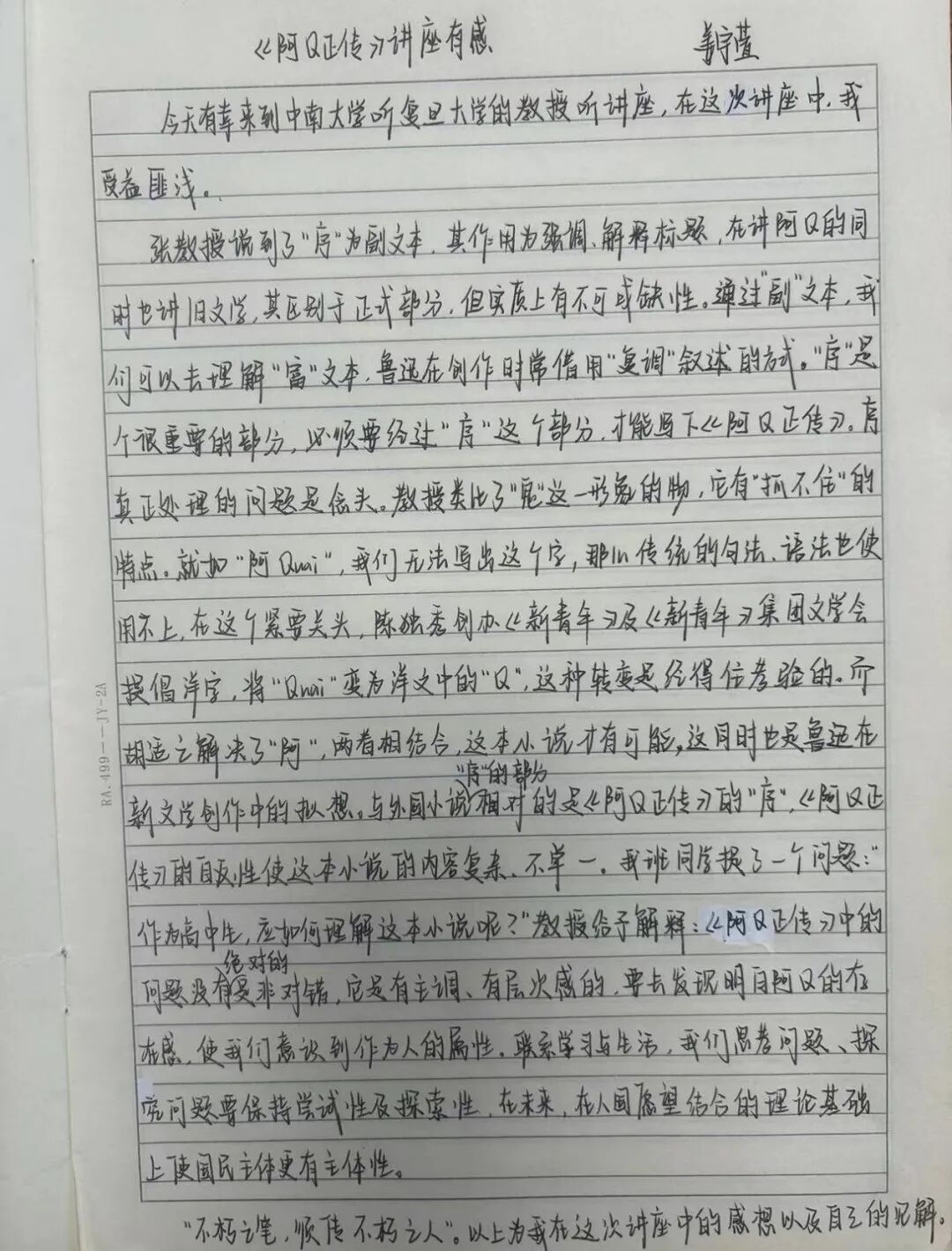 张业松教授的讲座主要围绕序进行解读,在新文学的发明语境中阐述鲁迅小说《阿Q正传》的创作缘起和文本叙事,深入探讨鲁迅与新文学发生和发展之间的互动关系。张教授特别引导我们关注两个细节,一是鲁迅先生因受《新青年》的启发,最终确定了阿Q这一命名。二是提到阿Q名字中的阿字是经得起历史考据和检验的,这不同于以往的虚构创作,是新文学创作方法的大胆尝试。