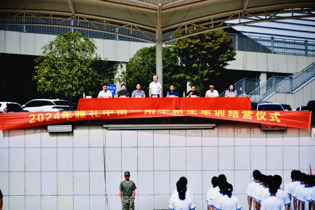 2024年8月30日上午,雅礼中南一附中在军训营地举行了2024级新生军训的结营仪式。雅礼中南一附中虢志宇校长、刘西亮书记、卿科副校长、蒋娟副校长、教育处李云团主任、谢铁华副主任、团委易翀云书记、年级组长许满艳、徐旺总教官以及班主任老师和教官们出席了此次仪式。