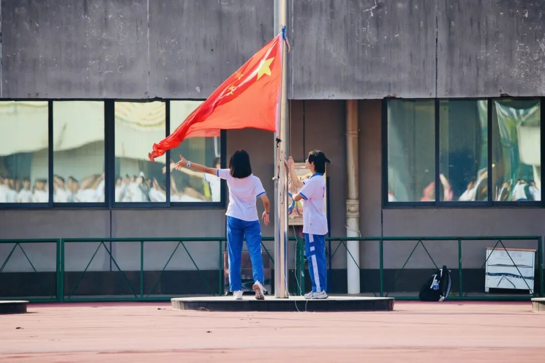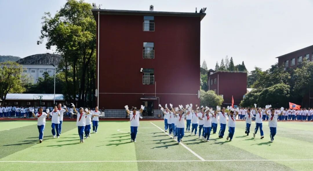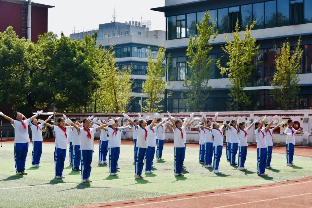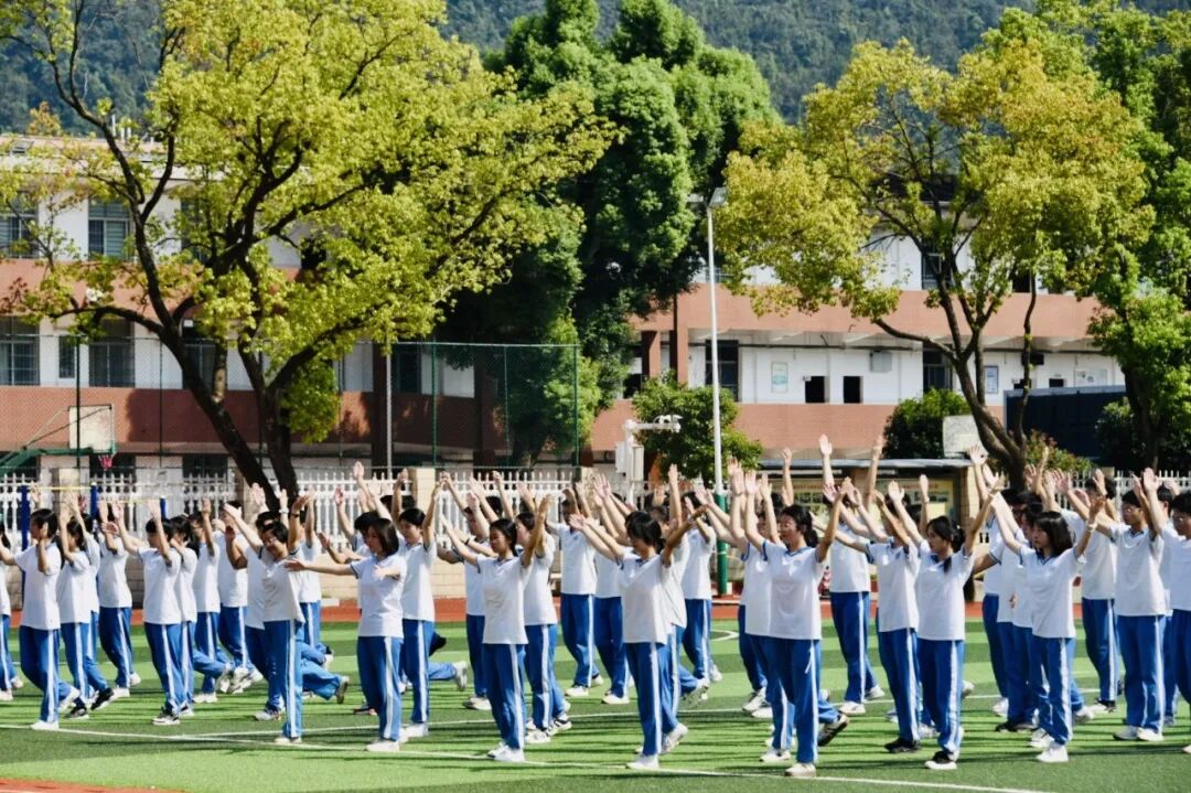 面对烈日炎炎,同学们斗志不减。整齐划一的广播操动作,闪耀的是同学们饱满的运动激情。