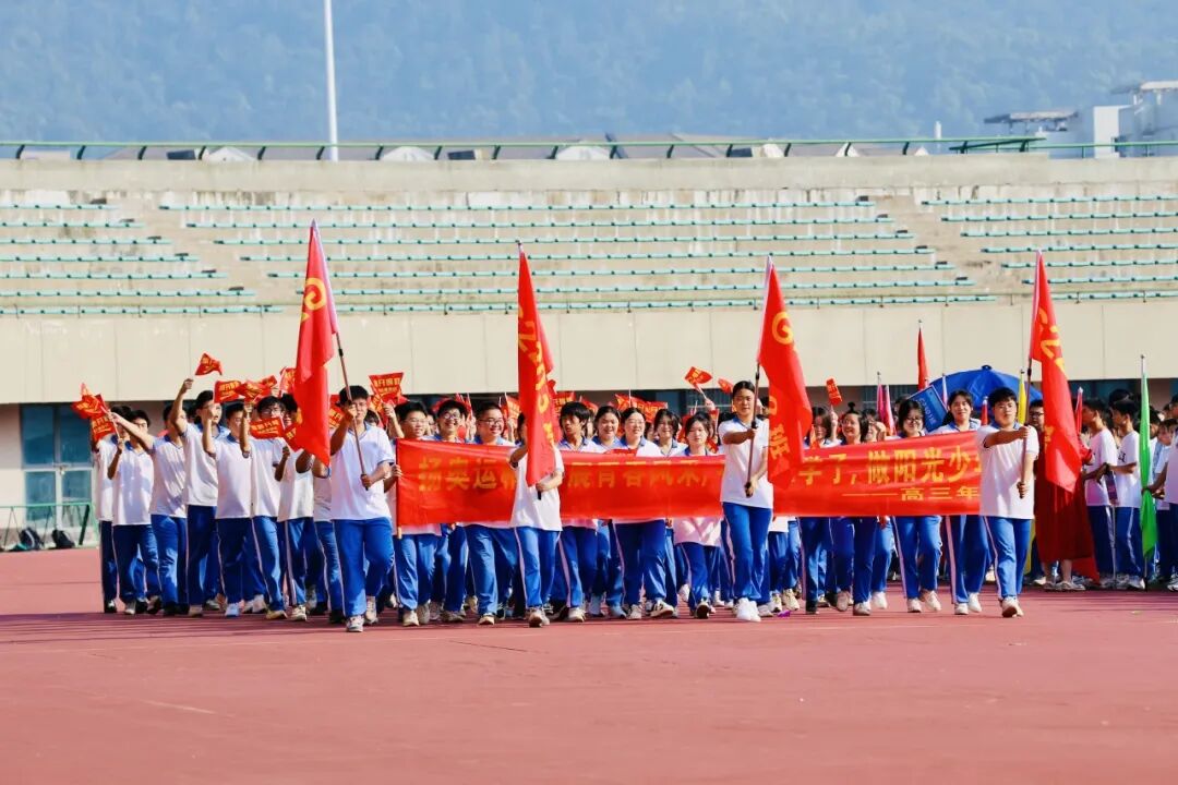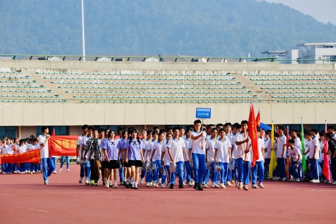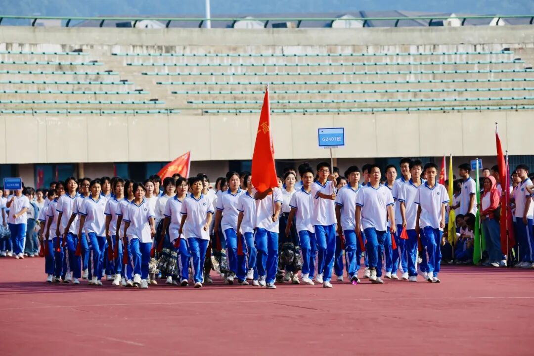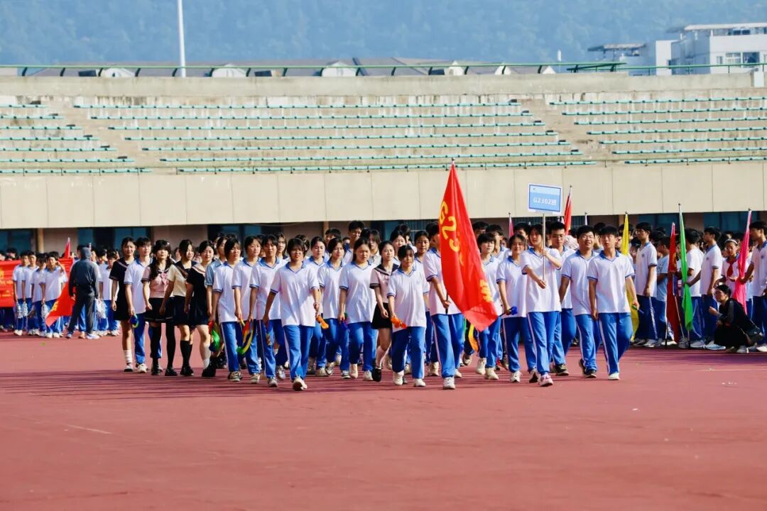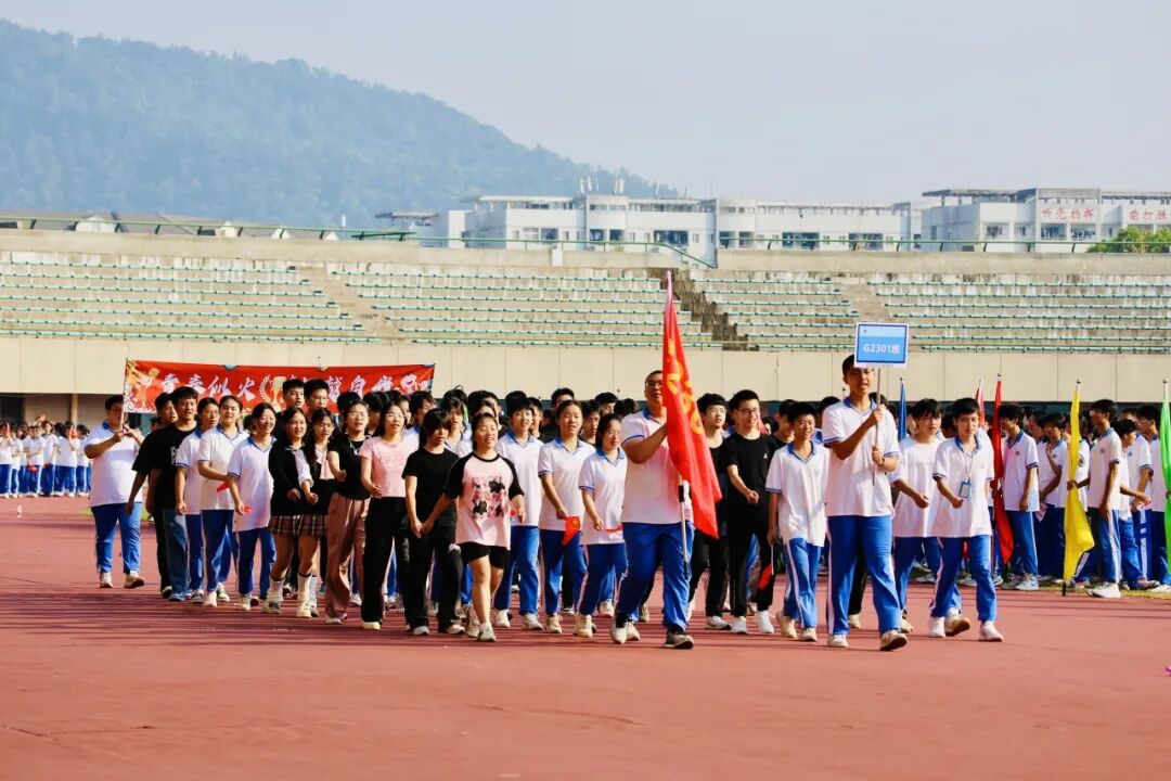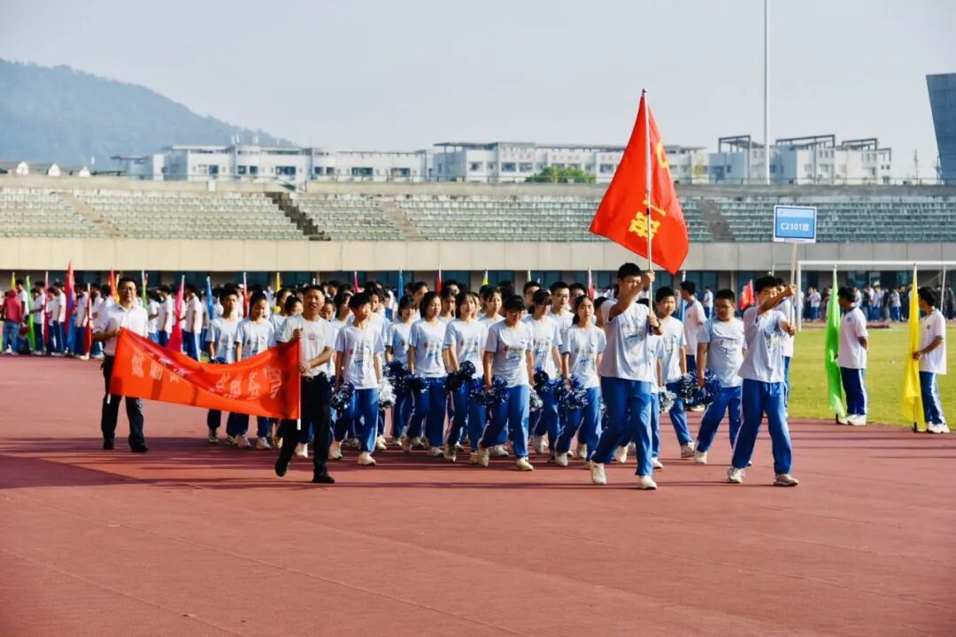 上午八时,运动会拉开帷幕。开幕式由李云团主任主持。彩旗方阵率先入场,迎风招展的彩旗宣示着我校学子昂扬的精神面貌。各班级方阵依次入场。从扇子舞到街舞串烧……从经典的传统服饰到现代的科技元素,各式各样服装与丰富多彩的表演彰显青春活力与无限创意。每一个班级都用自己的方式诠释着对体育精神的热爱与追求。