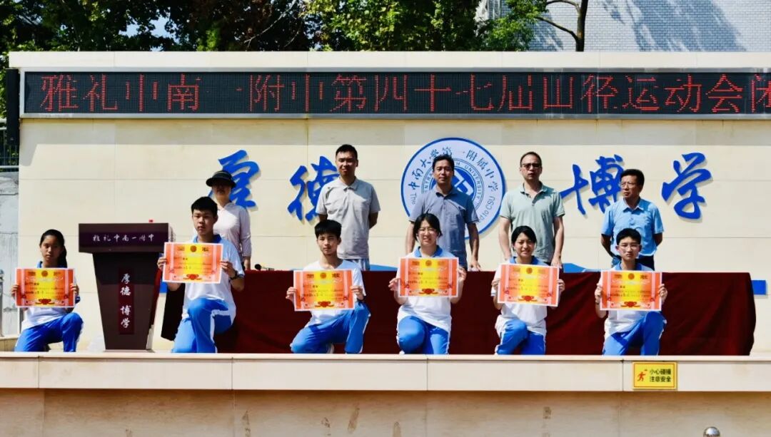 诸位校领导为同学们颁发集体奖项,表彰在本次运动会中表现优秀的班级和个人。最后,刘西亮书记宣布本次运动会闭幕。