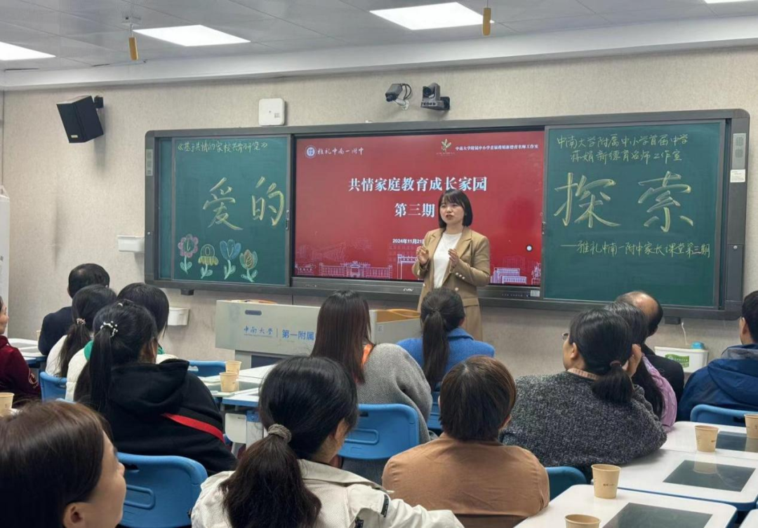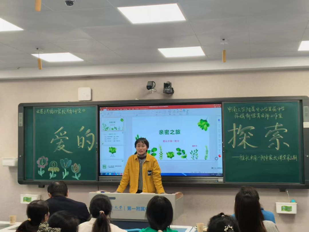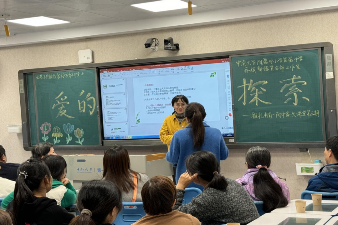 课程由我校教育处和中南大学附属中小学蒋娟中学新德育名师工作室共同组织实施,每周四晚七点半至九点,每期12节课时,面向全校家长和老师。在这个充满温情与期待的夜晚,家长老师们带着对爱的渴望和对爱探索的热情,汇聚一堂,在工作室导师龚京华老师的带领下,共同开启了一场关于爱与智慧的成长之旅。
