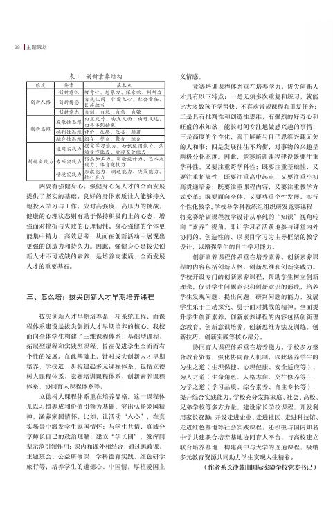 英才教育专家约瑟夫·兰祖利提出“三环英才理论”,即英才所具备的三大特点:高于平均水平的能力、对任务的执着精神和创造力。美国天才教育的重点是激发孩子适应各种环境的能力,重点是培养其独立能力、团队精神、创造能力和领导才能等素质。这些理论启示我们:拔尖创新人才成长的核心素养包括品德、志向、天赋、专注、勤奋、创造力、社会技能、领导力、心理素质等。