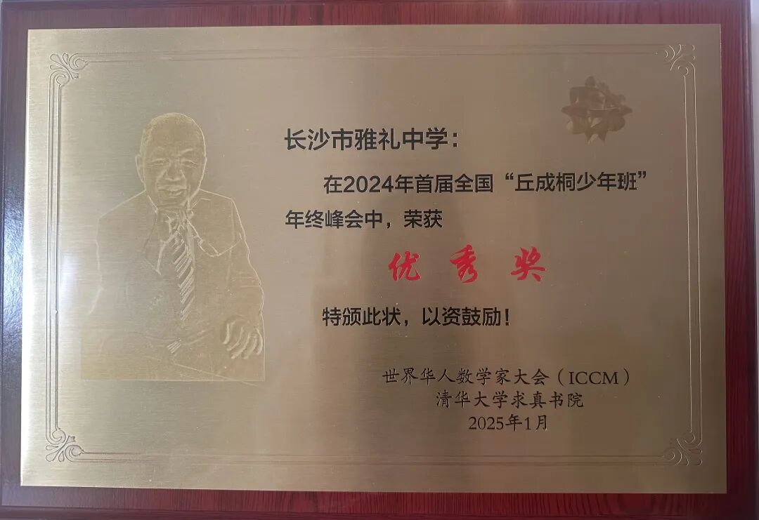 2025年1月4日,2024年首届全国“丘成桐少年班”年终峰会在上海复旦大学附属中学举行,雅礼中学获首届全国“丘成桐少年班”优秀奖。