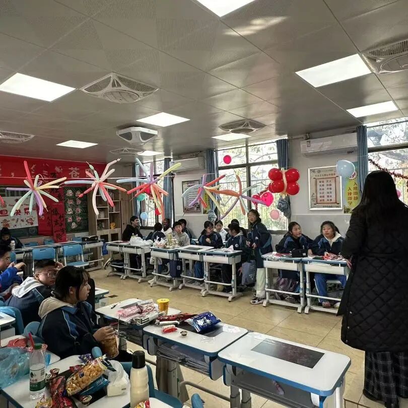 班级庆祝活动更是精彩纷呈。师生们共同布置教室,挂上彩带和气球,营造出浓厚的节日氛围。班级联欢会上,同学们自编自导自演的小品、歌舞、魔术等节目轮番上演,展现了同学们的多才多艺和青春活力。领导、老师们也积极参与到庆祝活动中,深入各个班级中,为同学们带来了惊喜。有的吉他弹唱,有的载歌载舞,有的表演魔术……校园里充满着欢乐的气息。