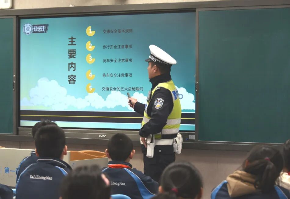 为增强学生安全意识,提升自我保护能力,筑牢校园安全防线,我校于2月11日特邀岳麓区交警大队四中队陈照雄警官走进校园,开展了以“警官宣讲进校园,安全教育伴我行”为主题的安全教育活动,为全校师生带来了一堂生动实用的安全教育课。