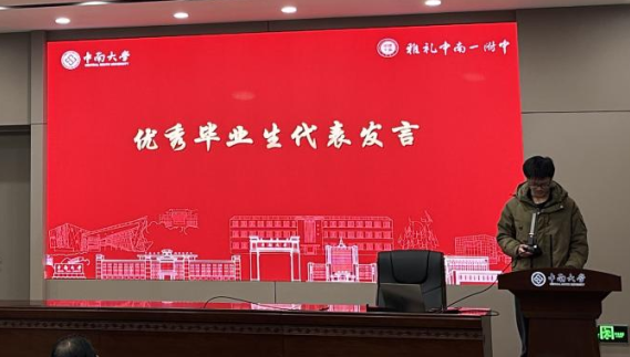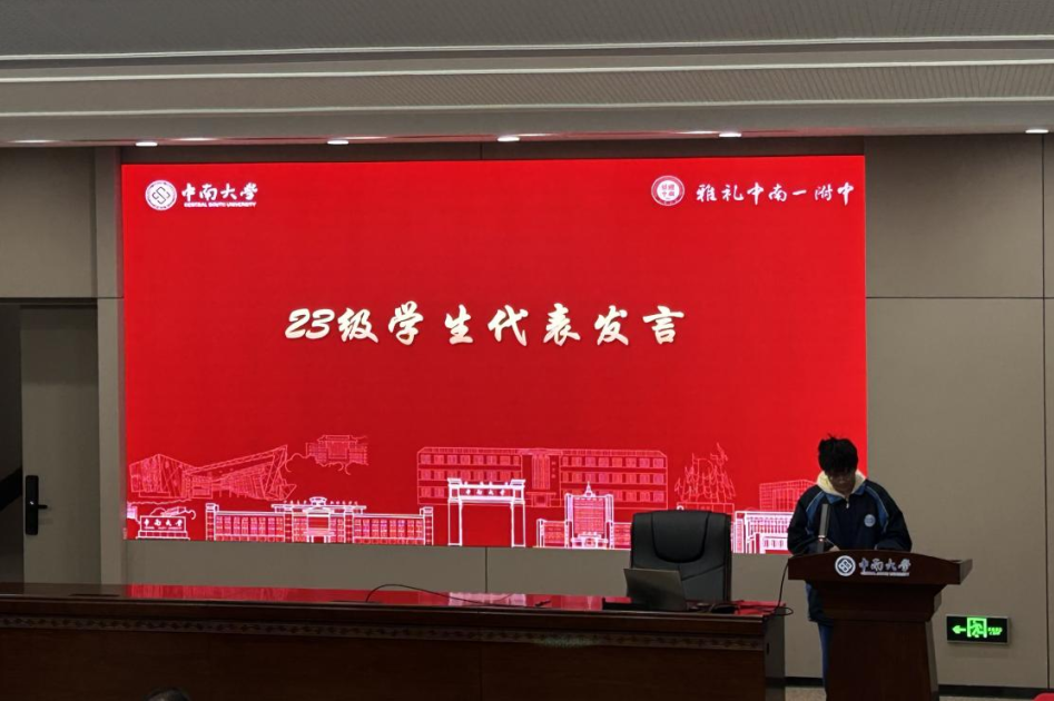 学生代表G2301班袁超宇同学的发言,如晨钟激荡。他坦言学海浮沉的困惑,更抒写同窗互助的温暖,字句间流淌着“慎终如始,逐梦无悔”的信念。少年的声音清亮而坚定,恰似破土新竹,直指苍穹。