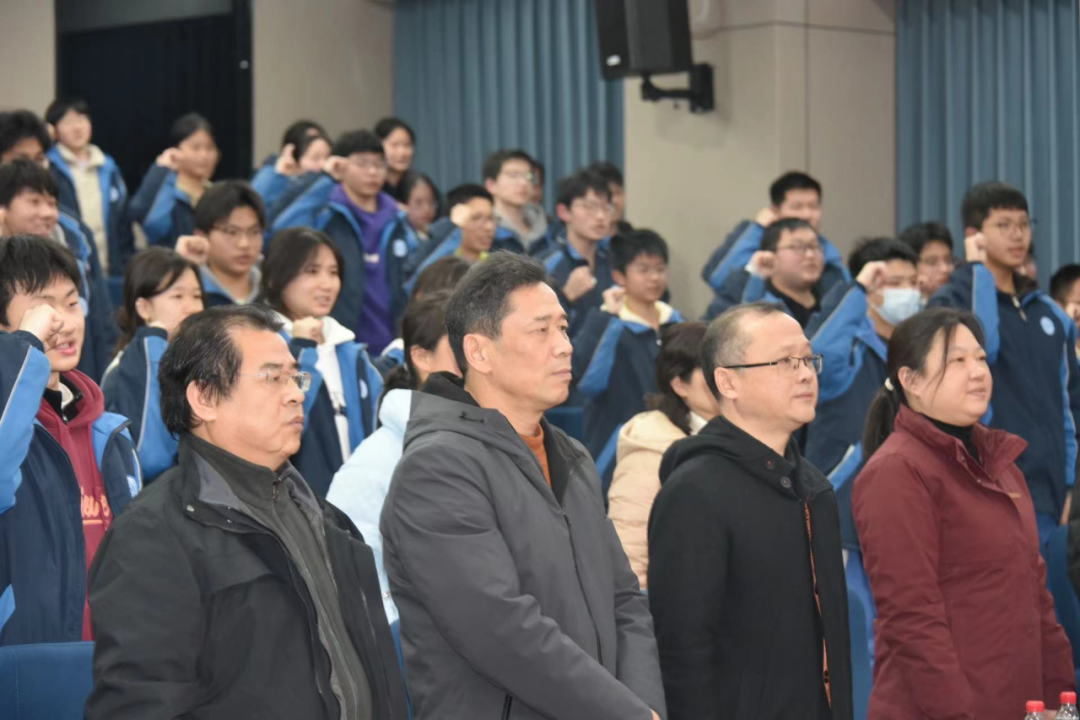在互动交流环节之后,全体学子肃然起立,在周品宏同学的带领下庄严宣誓。