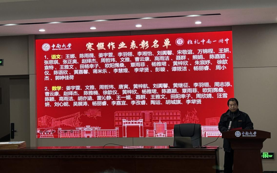 卿科副校长宣读优秀寒假作业名单,每一个跃然纸上的名字,都是假期里笔耕不辍、挑灯夜读的身影。