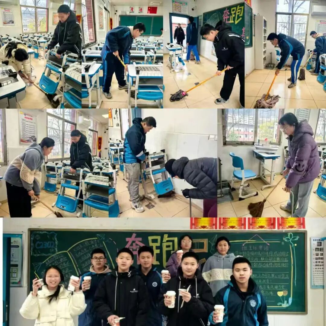 2024年2月8日,C2302班的同学们手持扫帚抹布分工协作,细致地掸去窗棂积尘、擦亮玻璃明镜、清扫地面角落、拖净瓷砖倒影,将教室装点得窗明几净。焕然一新的学习空间里,每一缕阳光都映照着少年们对新学期的热切期盼。