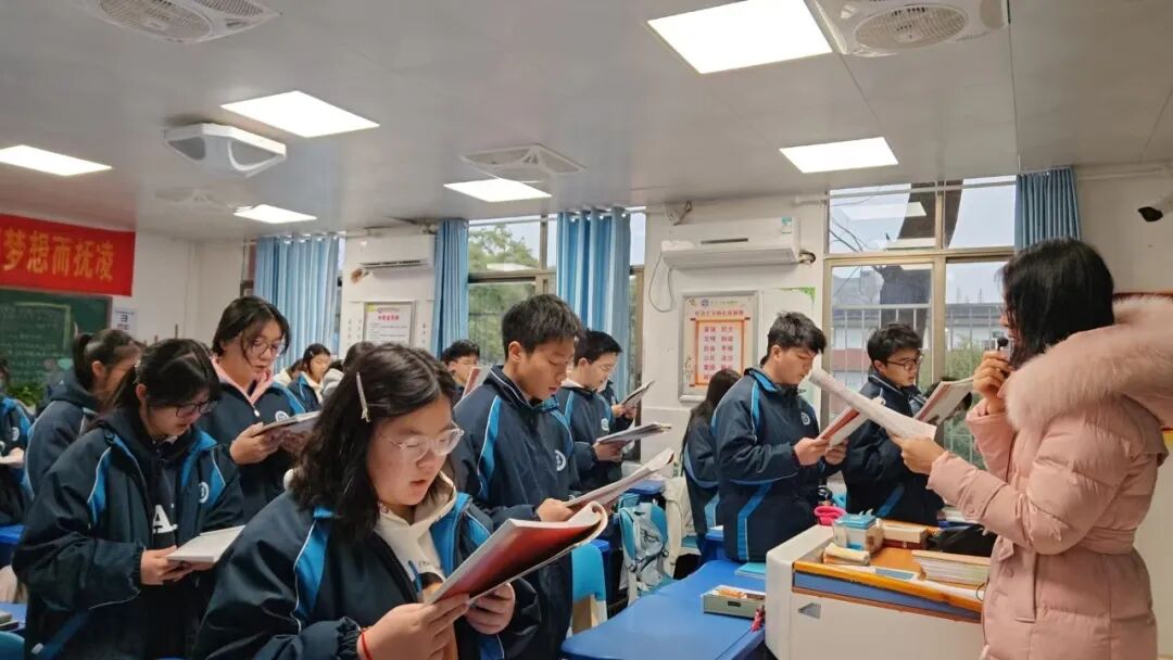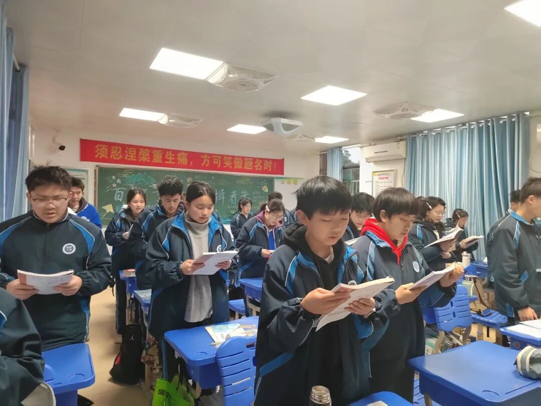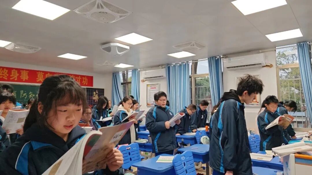 早自习时,班主任和任课老师们总是准时出现,陪伴着学生开启充实的一天。当第一缕晨曦轻吻窗棂时,琅琅书声已如春潮涌动。先是 5 分钟的站立齐读,同学们脊梁笔挺如新竹,晨读声浪里裹挟着破茧的锐气,瞬间驱散困意,唤醒蓬勃的学习热情。随后的自由朗读环节,大家沉浸在知识的海洋中,通过诵读加深理解与记忆。最后,老师通过抽背检验学习效果,让早自习的知识真正入脑入心。