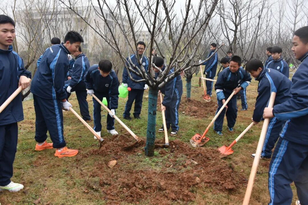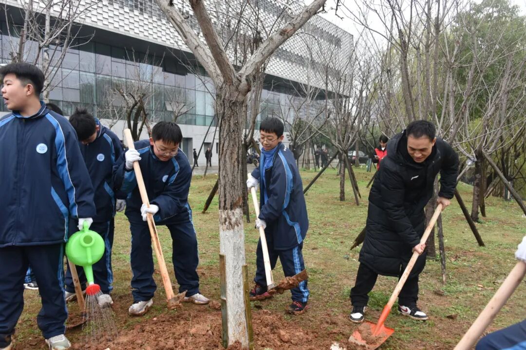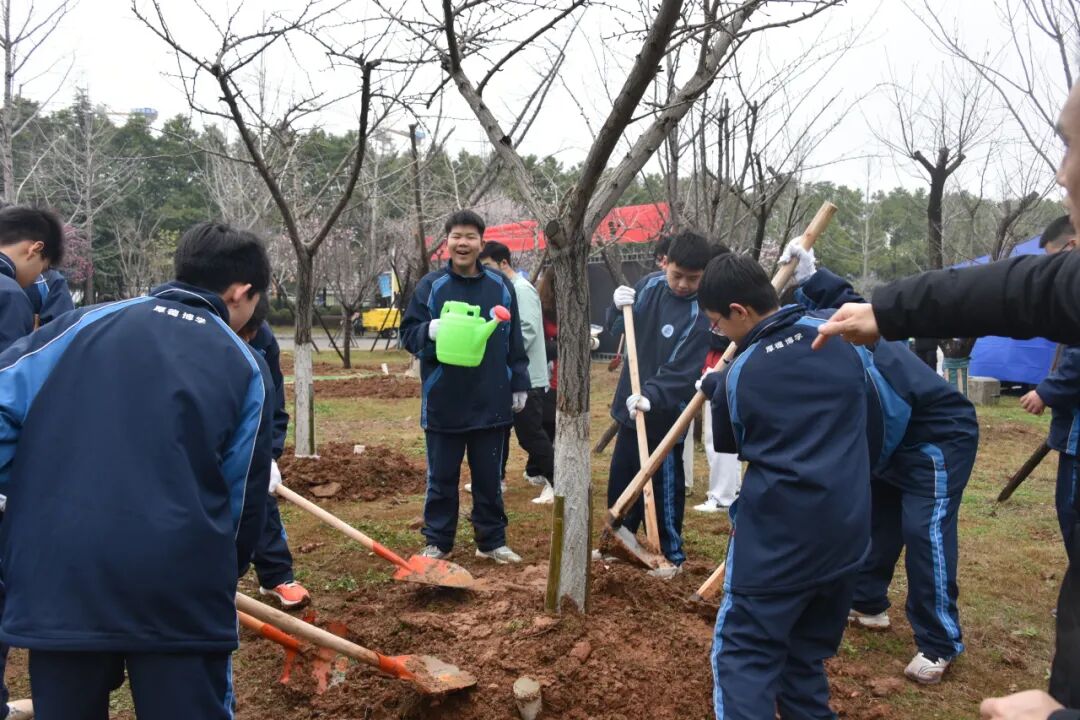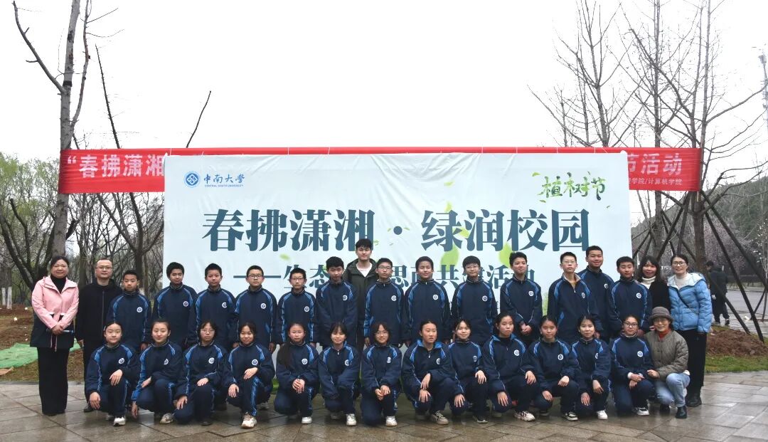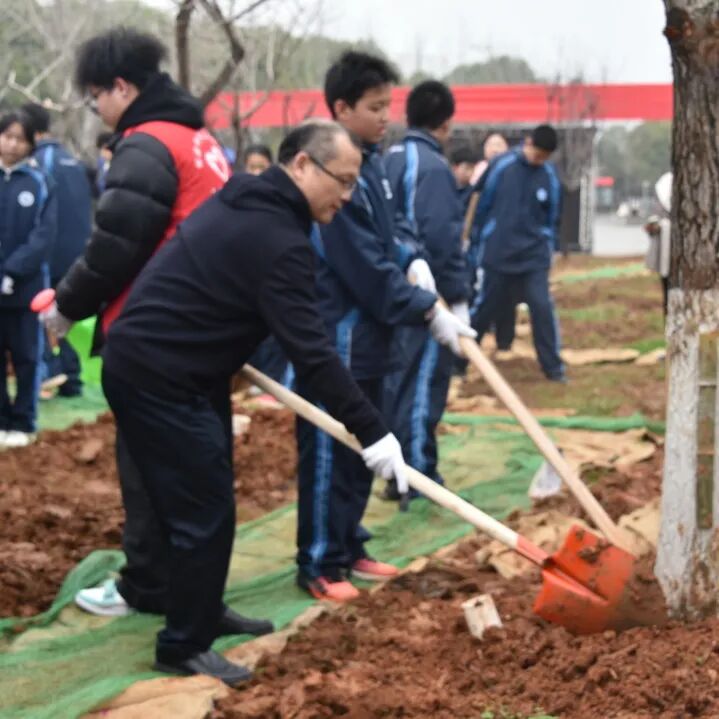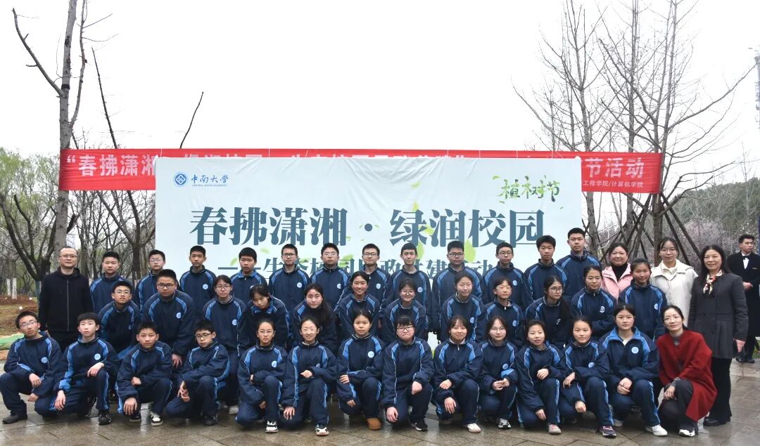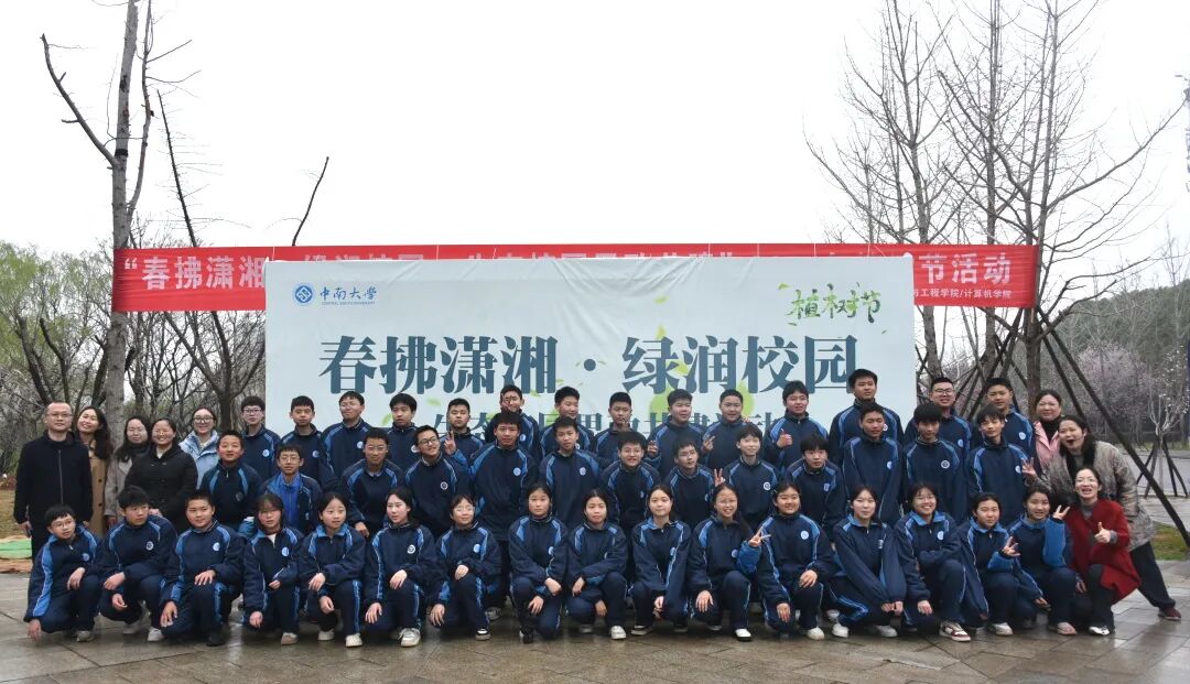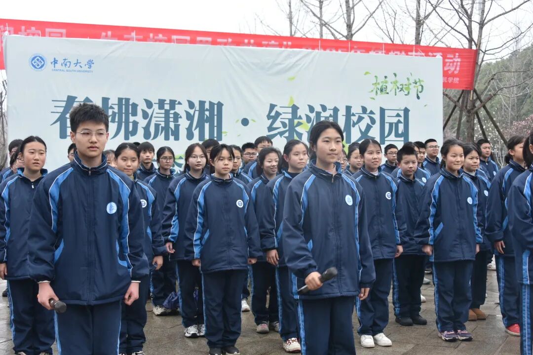 为深入推进校园绿色低碳生态文明和大中小学思政教育一体化建设,2025年3月12日下午,由中南大学后勤保障部、电子信息学院、能源科学与工程学院、计算机学院联合主办,校园管理中心及中南大学潇湘(麓南)校区绿城物业服务中心承办的“春拂潇湘·绿润校园”植树节活动在这里隆重举行。我校初一、初二全体学生在虢志宇校长、蒋娟副校长、团支部易翀云书记、初一、初二年级组长、班主任和学科老师、中南大学人文学院实习老师的带领下代表学校参与此次活动。